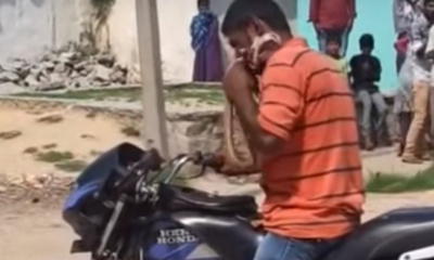 Enquanto andava de moto, um indiano de 38 anos, que não teve a identidade divulgada, cruzou com uma cobra em seu caminho e resolveu fazer algo...