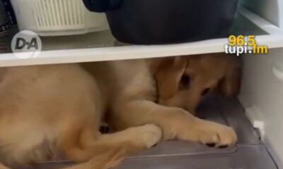 A cadela Margot, da raça golden retriever, conquistou as redes sociais ao ser flagrada tentando escapar do calor de um jeito inusitado: entrando na geladeira. Mesmo...