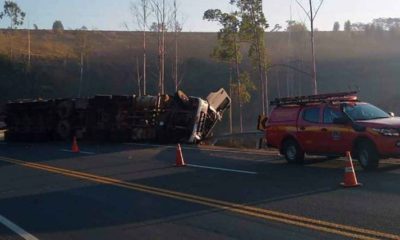 Por Mateus Parreiras Um homem de 37 anos ficou preso às ferragens da carreta que conduzia e foi libertado por uma equipe do Corpo de Bombeiros...