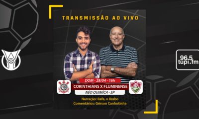 A Super Rádio Tupi transmite com narração do Rafa, o Brabo e comentários do Gerson Canhotinha de Ouro