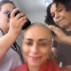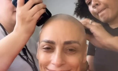 Suzana Pires, de 47 anos, raspou a cabeça para dar vida à personagem Clara, uma professora que será diagnosticada com câncer de mama, no filme “Câncer com Ascendente em...
