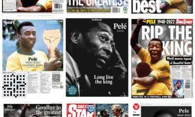 O único jogador a conquistar três Copas do Mundo ganhou as capas de jornais ao redor do planeta nesta sexta-feira. Pelé, o Rei do Futebol, morreu...