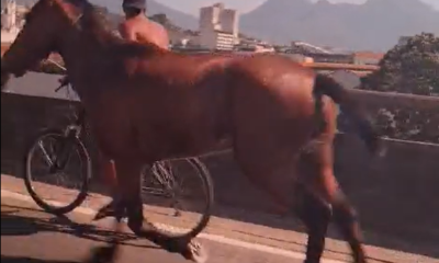 Uma cena chamou a atenção dos motoristas que passavam pelo Elevado do Gasômetro no início da tarde desta terça-feira (19). Três homens em bicicletas conduziam um...