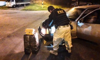 A Polícia Rodoviária Federal (PRF) e a Polícia Militar apreenderam, na madruga deste sábado (4), milhares de pinos de cocaína dentro de um carro roubado. O...