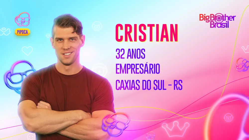 Cristian é mais um participante confirmado no grupo Pipoca, do Big Brother Brasil 23. O empresário, de 32 anos, de Caxias do Sul, no Rio Grande do Sul, trabalhou durante um ano na equipe de Ronaldinho Gaúcho. É vaidoso, corta o cabelo a cada 15 dias.