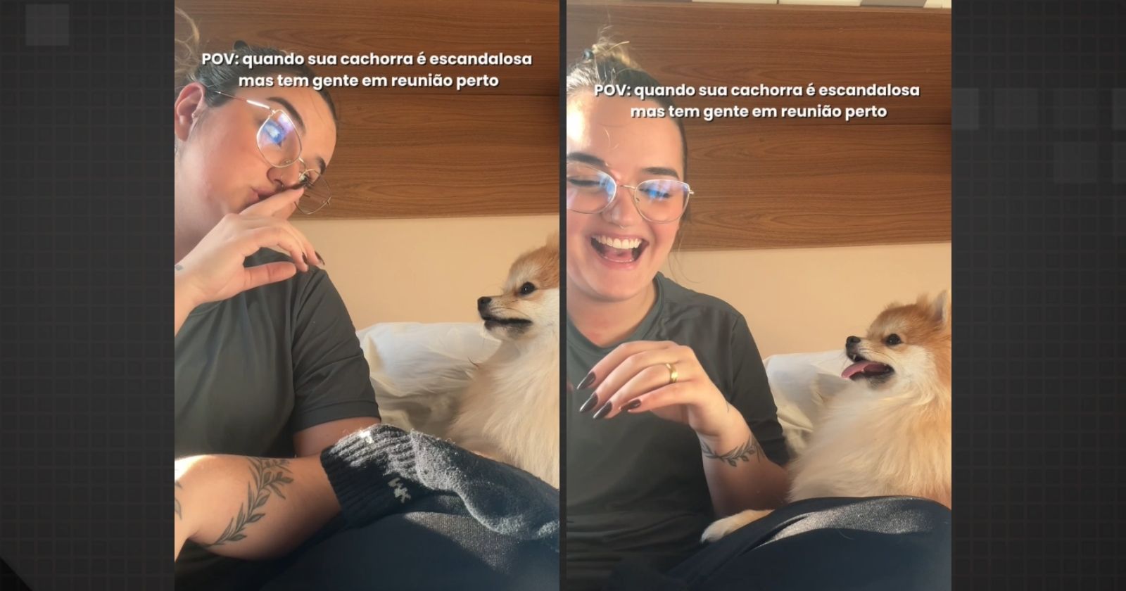 Uma tutora identificada como Bruna não esperava que um pedido de silêncio durante uma reunião fosse render tanta repercussão. Sua cachorra, conhecida por ser “escandalosa”, surpreendeu ao obedecer e soltar um latido suave, quase em “modo sussurro”.
