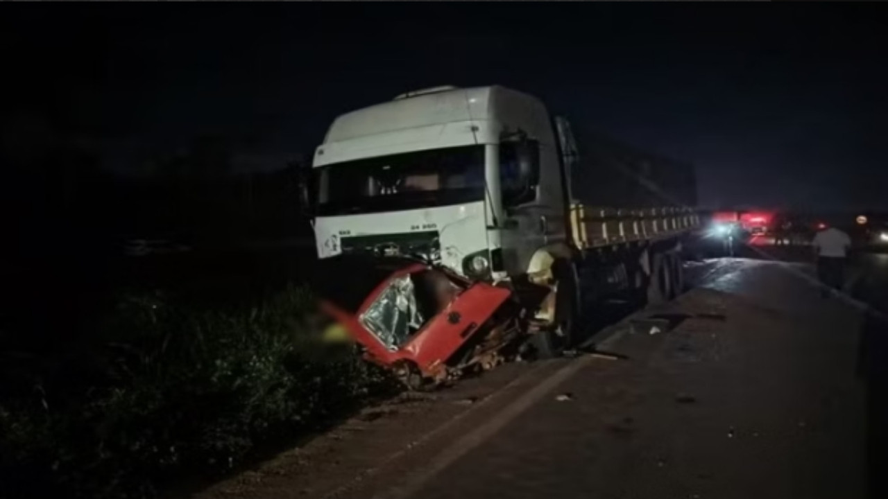 Colisão aconteceu na madrugada desta segunda-feira (14), e vítimas estavam em um carro de passeio; apenas uma foi identificadaUm acidente de trânsito deixou cinco pessoas mortas na BR-163, em Matupá, a cerca de 684 km de Cuiabá, no Mato Grosso, durante a madrugada desta segunda-feira (14). Segundo a Polícia Rodoviária Federal (PRF), a colisão ocorreu por volta de 0h30 e envolveu um carro e uma carreta, no sentido Guarantã do Norte.