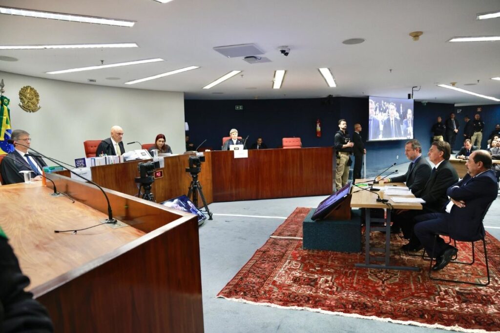 A sessão é conduzida pelo relator do processo, ministro Alexandre de Moraes, com participação do ministro Luiz Fux e do procurador-geral da República, Paulo Gonet.