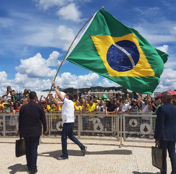 Ao chegar no Planalto, Bolsonaro ainda desceu a rampa, cumprimentou manifestantes e segurou camisas e bandeiras, separado apenas por duas grades. “Manifestação não é minha; é espontânea do povo”, disse o presidente ao fazer uma transmissão ao vivo em frente ao palácio.