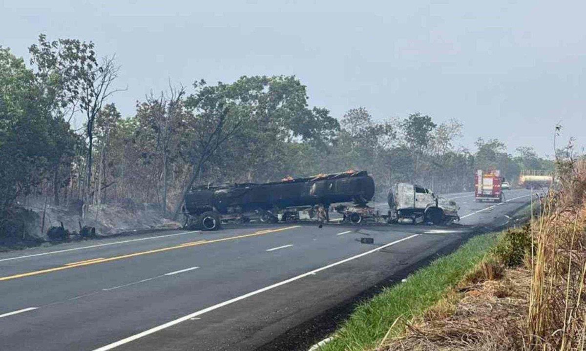 Um caminhão-tanque explodiu na MGC-135, em Augusto de Lima (MG), deixando o motorista preso na cabine. Veículo transportava gasolina e diesel