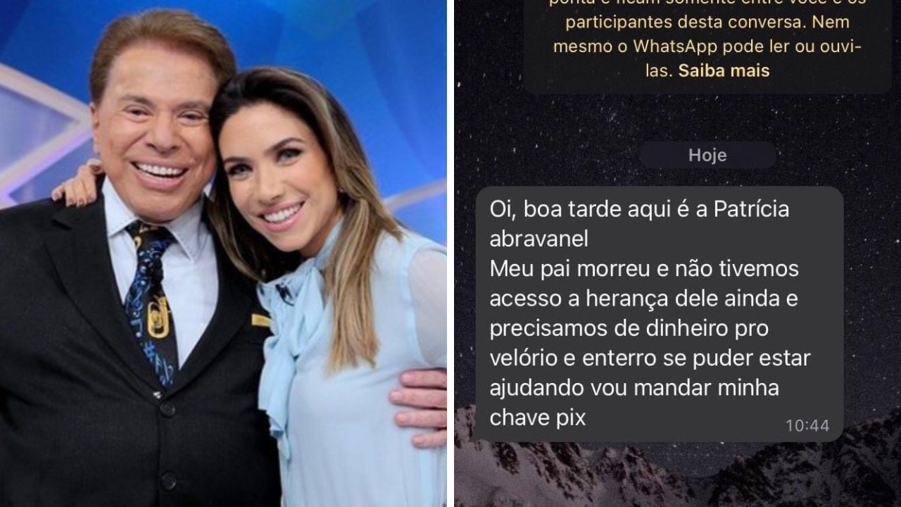 “Oi, boa noite. Aqui é a Patrícia Abravanel. Meu pai morreu e não tivemos acesso à herança dele ainda, e precisamos de dinheiro para o velório e enterro. Se puder ajudar, vou mandar minha chave Pix”, é o texto das mensagens enviadas.
