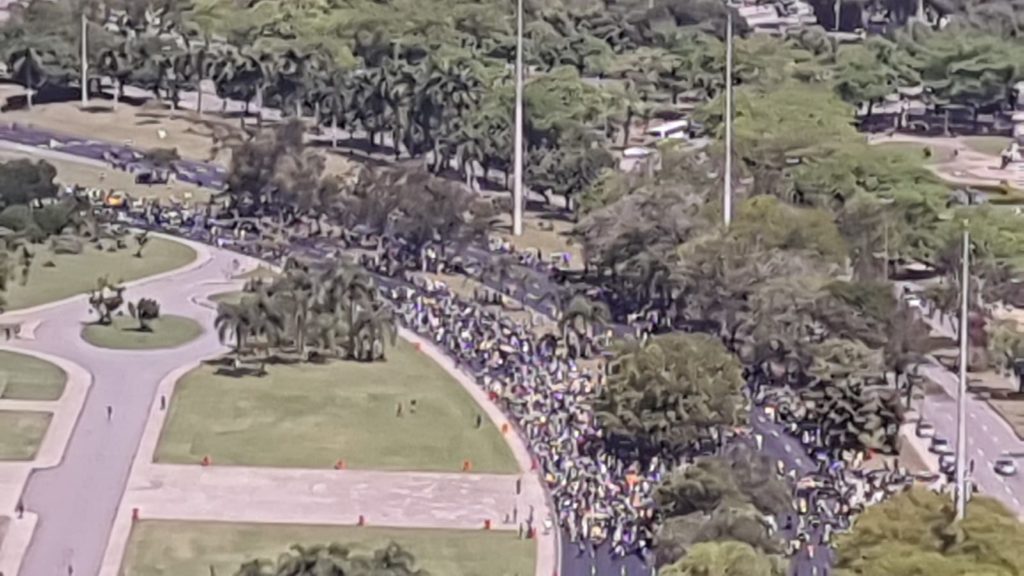 Para não praticar irregularidade eleitoral, Bolsonaro deixou o palanque e foi para um carro de som a 3 quadras de distância, aonde fez discurso para os eleitores dele.