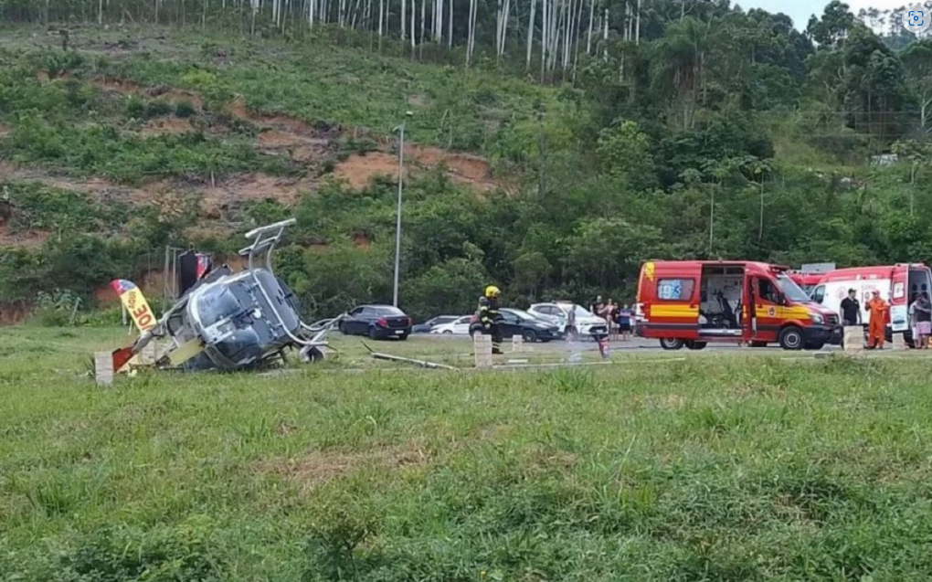Helicóptero cai e deixa duas pessoas feridas em Santa Catarina