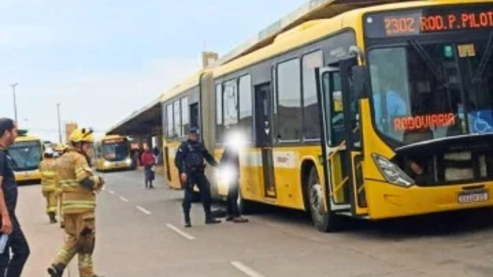Até a chegada da Polícia Militar do Distrito Federal (PMDF), populares detiveram o agressor dentro de um ônibus. O Corpo de Bombeiros Militar do Distrito Federal (CBMDF) também foi acionado e prestou atendimento à vítima.