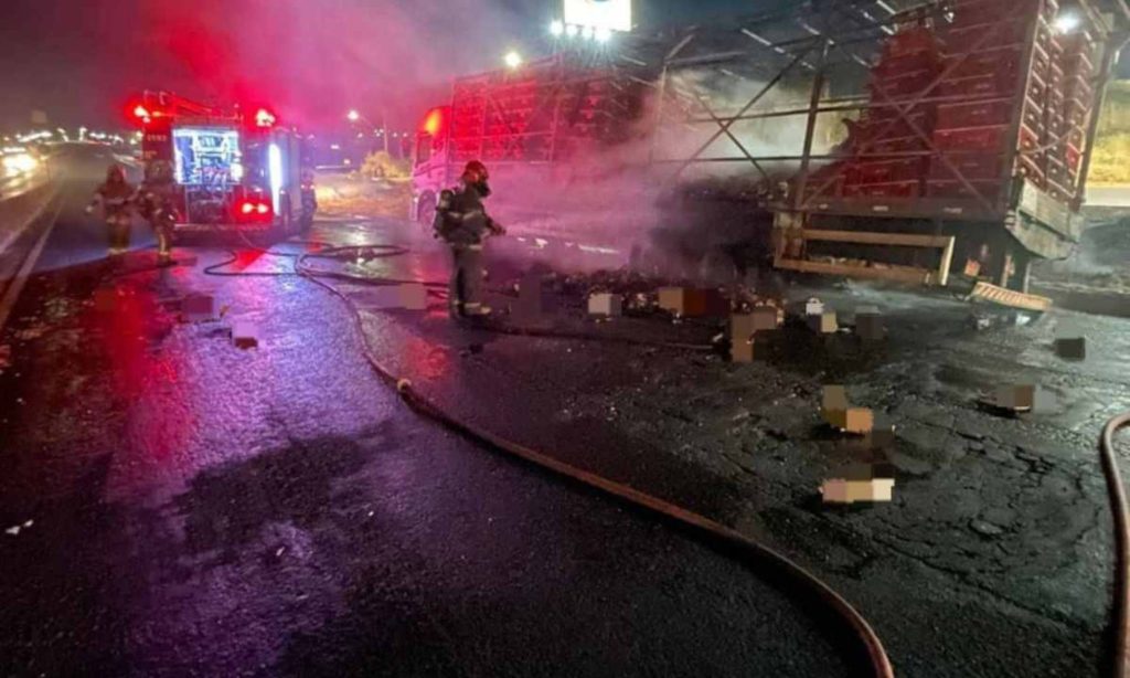 Incêndio atinge caminhão com mais de 3,5 mil frangos