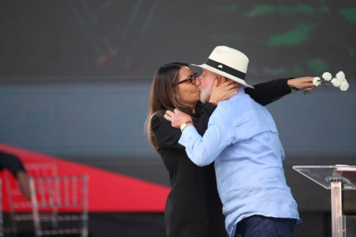 A primeira-dama e o petista então se beijaram no palco sendo aplaudidos pelo público.
