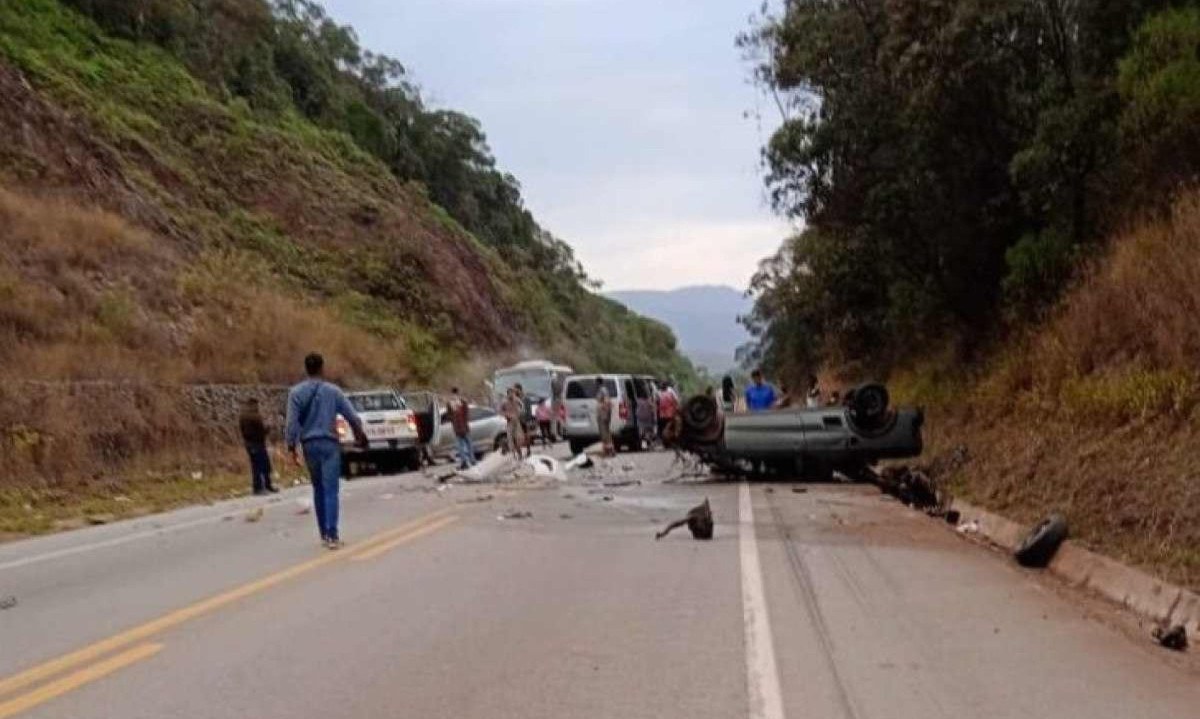 Uma batida envolvendo uma moto e quatro carros deixou ao menos uma pessoa morta e outra gravemente ferida na BR-356, em Ouro Preto, na Região Central de Minas Gerais, no fim da tarde deste sábado (10/8). O acidente aconteceu na altura do Sesc. O Corpo de Bombeiros informou que há mais feridos, mas não deu outros detalhes.