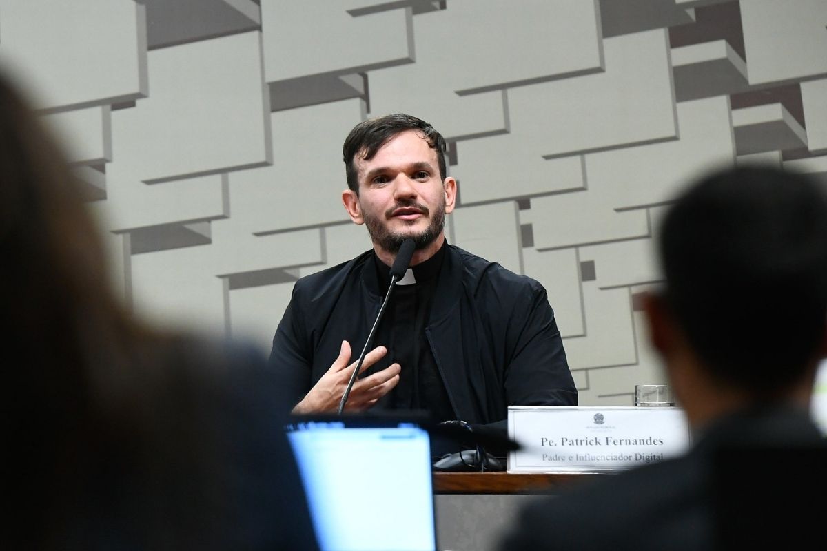 Padre e influenciador Patrick Fernandes na CPI das Bets. Foto: Carlos Moura/Agência Senado