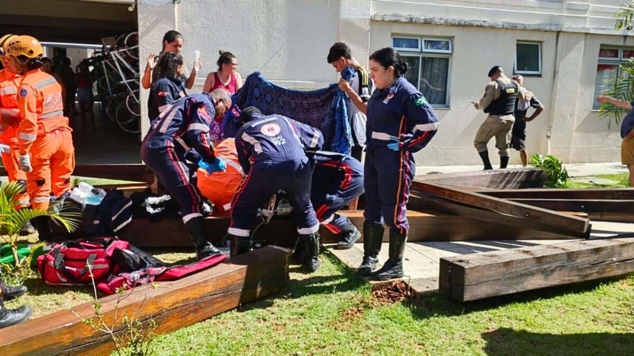 Estrutura de madeira quebrou na base e atingiu cinco crianças em cidade da Grande BH. Acidente ocorreu em condomínio