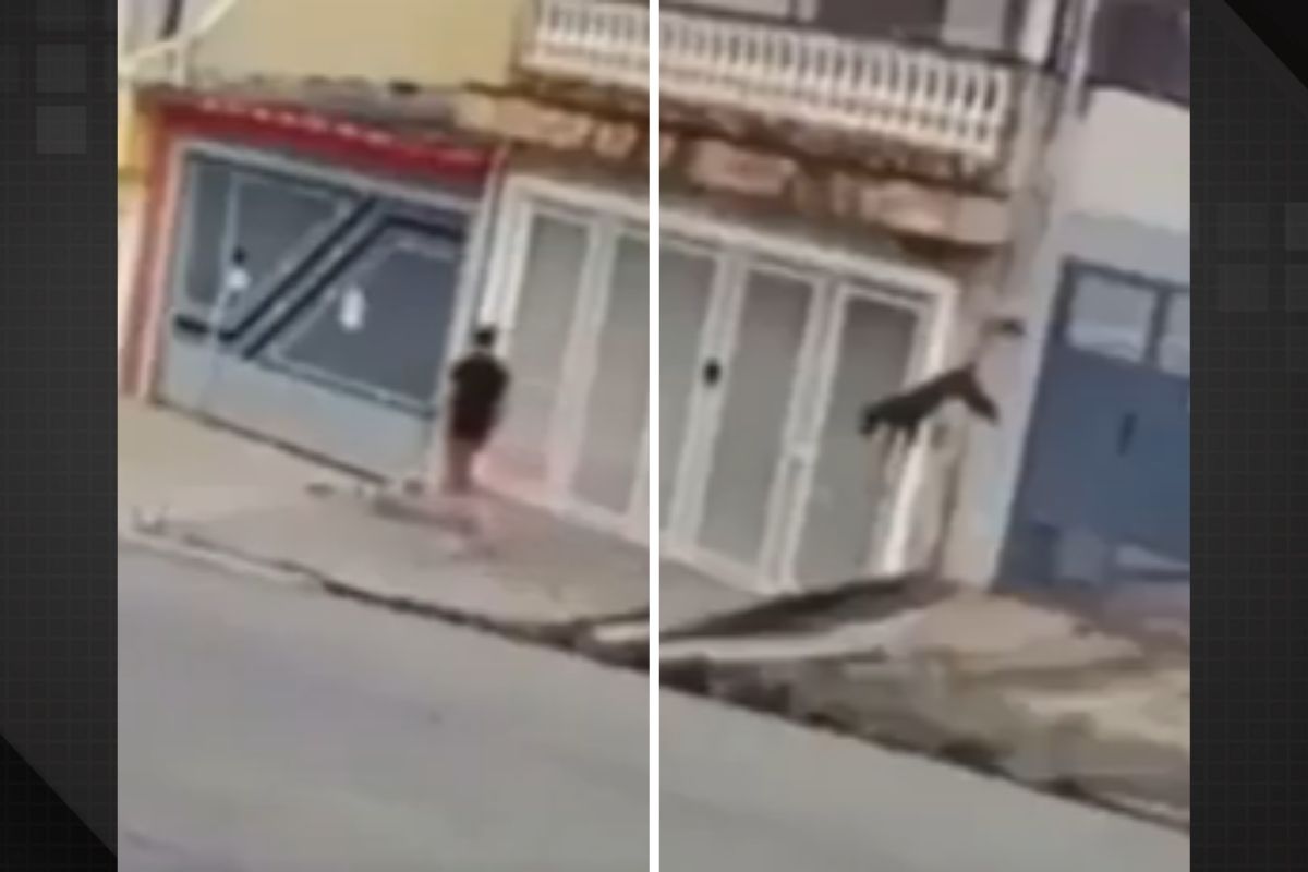 O animal conseguiu escalar e ultrapassar o portão da residência, descendo rapidamente uma ladeira até alcançar o Shih Tzu. Em um ato rápido de proteção, Tiago puxou a coleira de Lindinho e o ergueu, colocando-o em cima de um carro estacionado, escapando do ataque iminente.