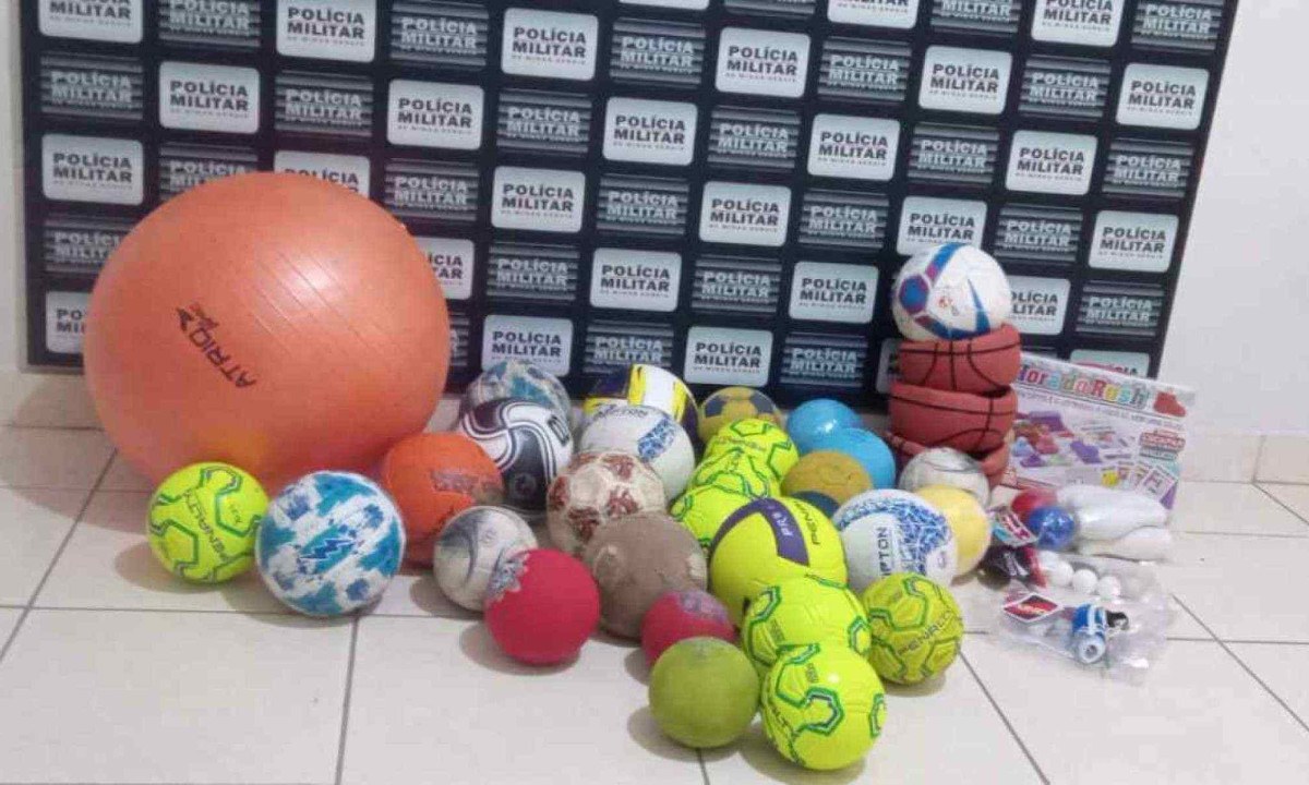 Dois jovens foram apreendidos em Caratinga, MG, suspeitos de furtos em escola. Polícia recuperou bolas, brinquedos e outros itens durante operação no local