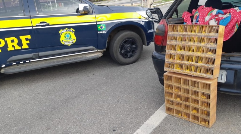 A Polícia Rodoviária Federal (PRF) resgatou 49 pássaros na BR-116, em Jequié, município da Bahia, na tarde deste sábado (18), no Km 677 da rodovia. As aves silvestres da espécie trinca-ferro estavam escondidas dentro de duas gaiolas no porta-malas de um Pálio EX.