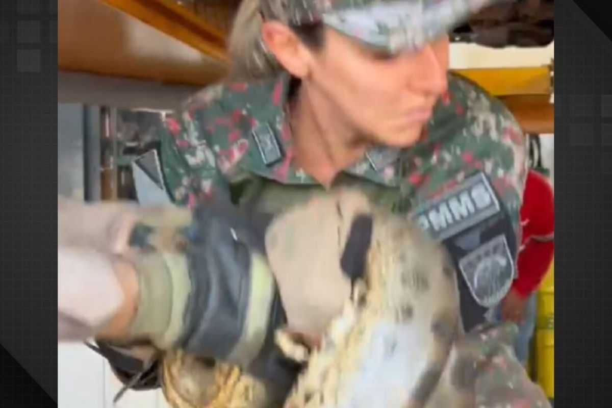 A dona do veículo percebeu a presença da serpente ao notar algo estranho na parte inferior da caminhonete e rapidamente acionou a Polícia Militar Ambiental (PMA) para realizar o resgate com segurança.