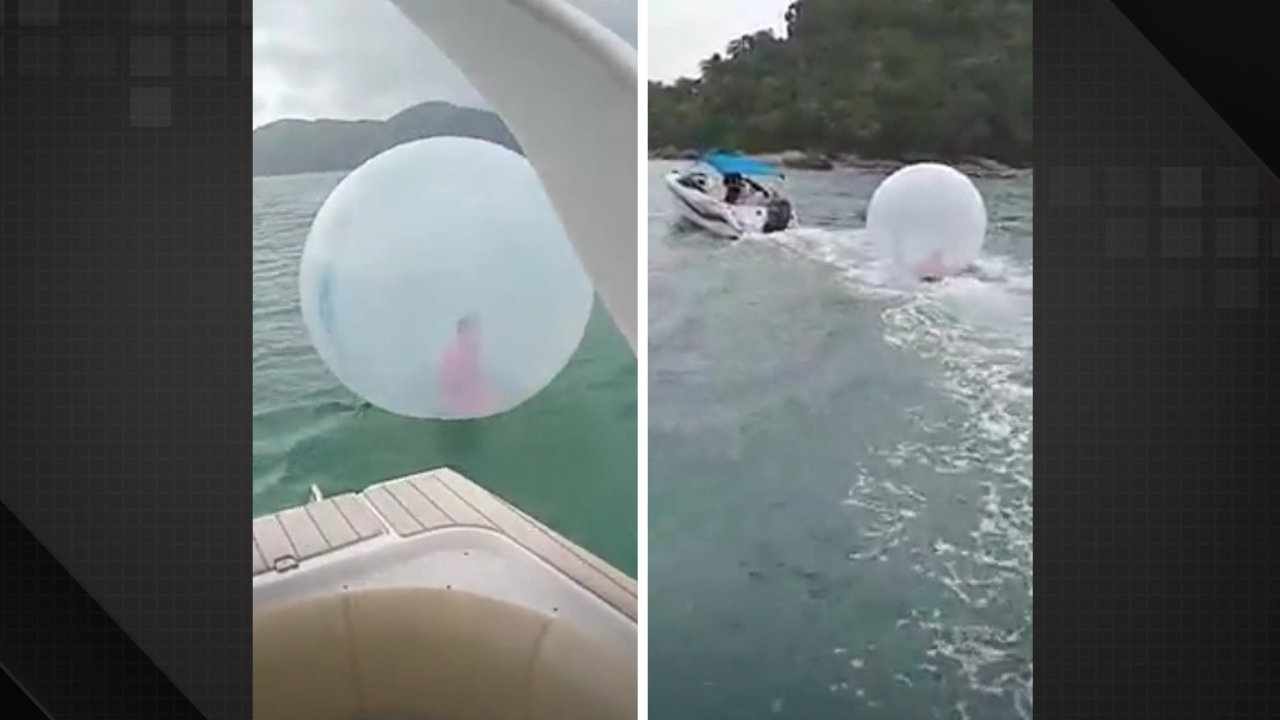 O empresário Rafael Graça do Prado, de 32 anos, estava em um passeio de lancha com os filhos quando avistou a bolha no meio do mar. Ao se aproximar, percebeu que havia uma criança dentro.