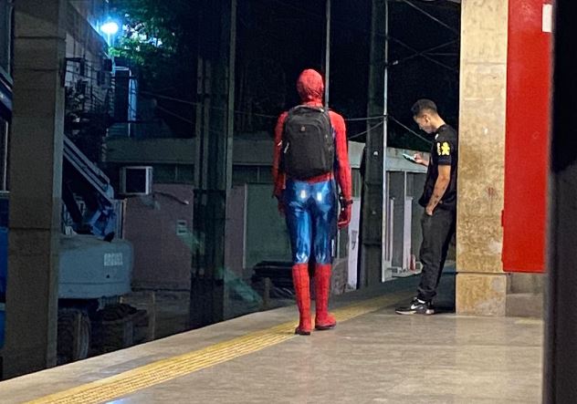 Uma pessoa com a roupa do Homem-Aranha foi agredida e depois reagiu, empurrando o agressor para os trilhos do metrô