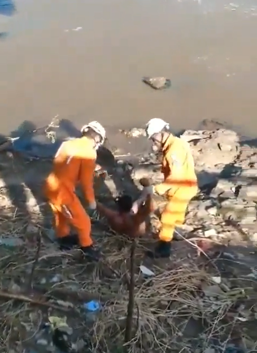 No vídeo, é possível observar os bombeiros trazendo o indivíduo, aparentemente imóvel, pelos braços até a margem do rio. Após ser retirado da água, a vítima reage, sentando-se, provocando risos tanto entre os populares quanto os bombeiros. Confira: