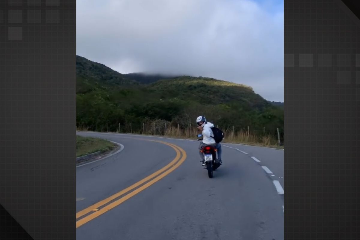 Cena curiosa virou meme após motociclista perder o controle ao tentar posar para câmera
