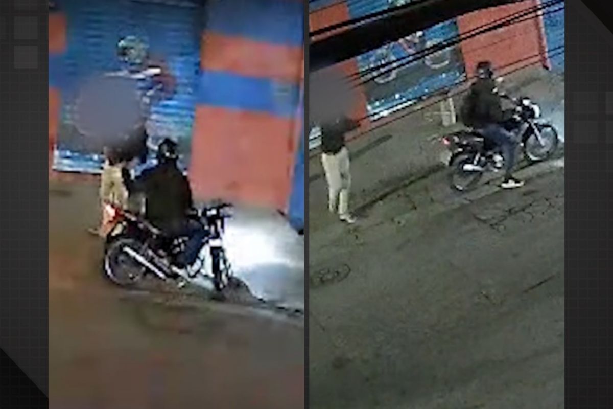 Mesmo ferido, o homem conseguiu pilotar a moto por alguns metros, mas logo parou e foi alcançado pelo PM, que correu atrás dele.