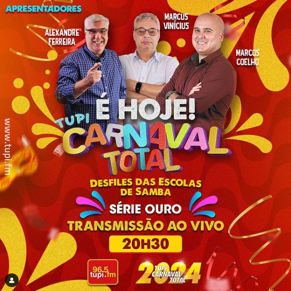 A Super Rádio Tupi transmite AO VIVO todo o primeiro dia de desfile das escolas de samba da Série Ouro do Carnaval do Rio.