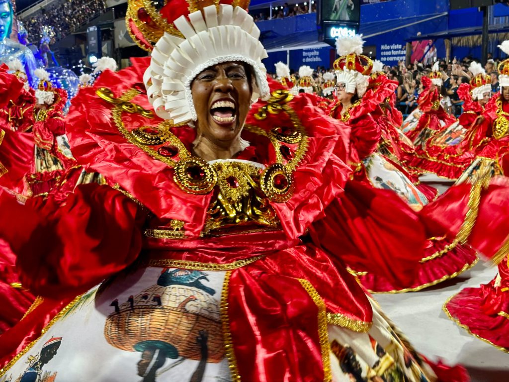 A Inocentes de Belford entrou na Sapucaí já na madrugada deste sábado (10), a quarta escola a desfilar pela Série Ouro neste primeiro dia. A agremiação vai exaltar a importância dos camelôs, na história e na vida do brasileiro.