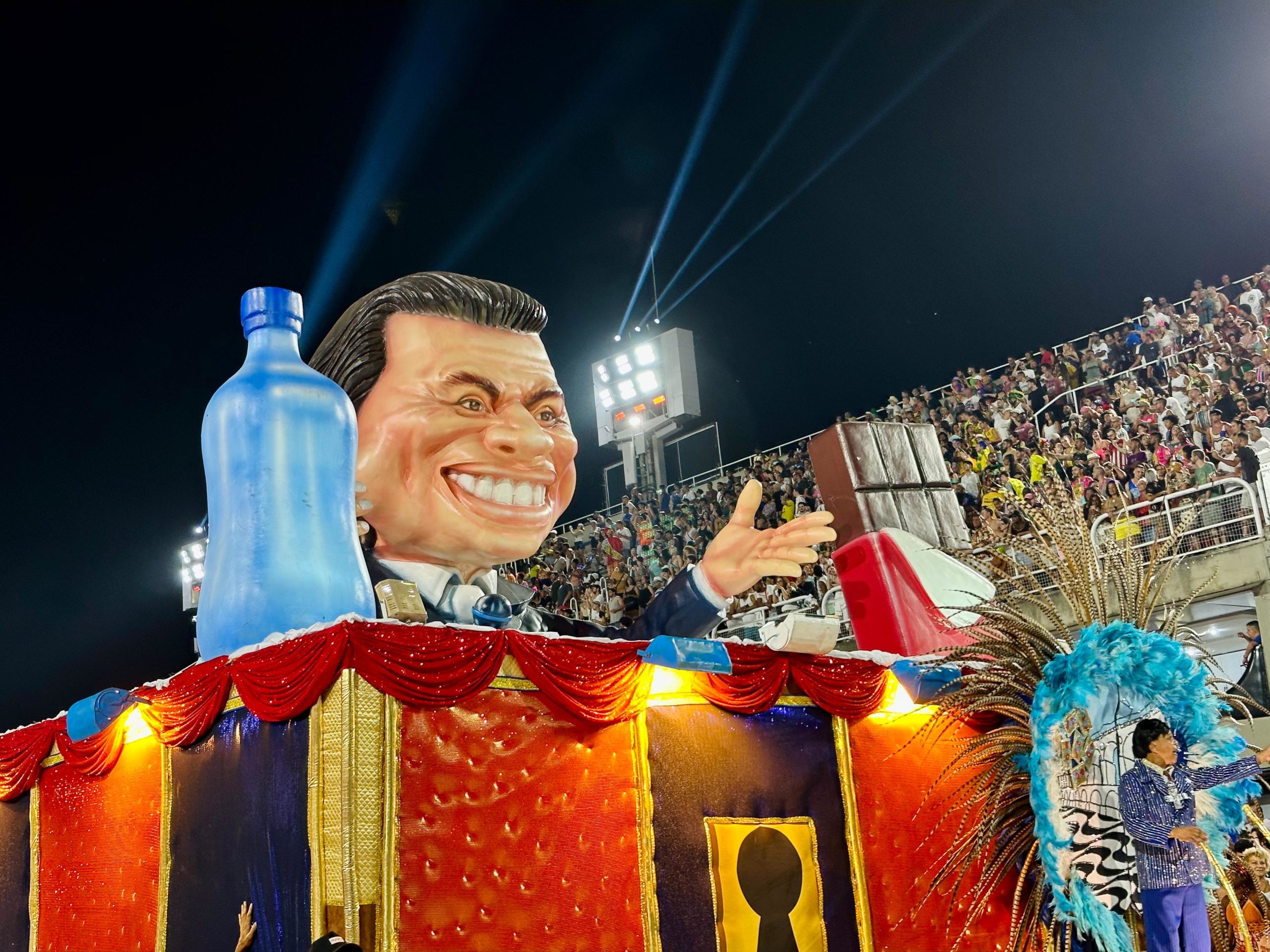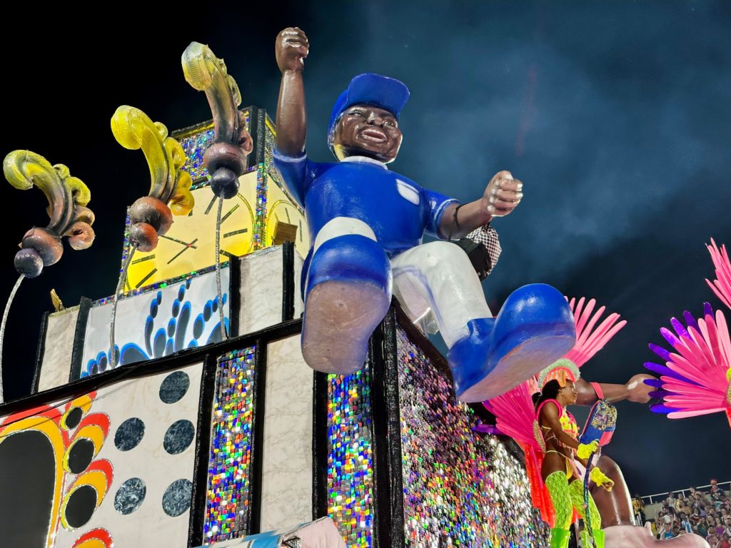 Escola fez um carro alegórico em homenagem a Silvio Santos, que começou sua carreira nas vendas de rua