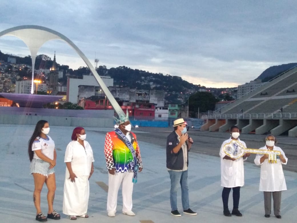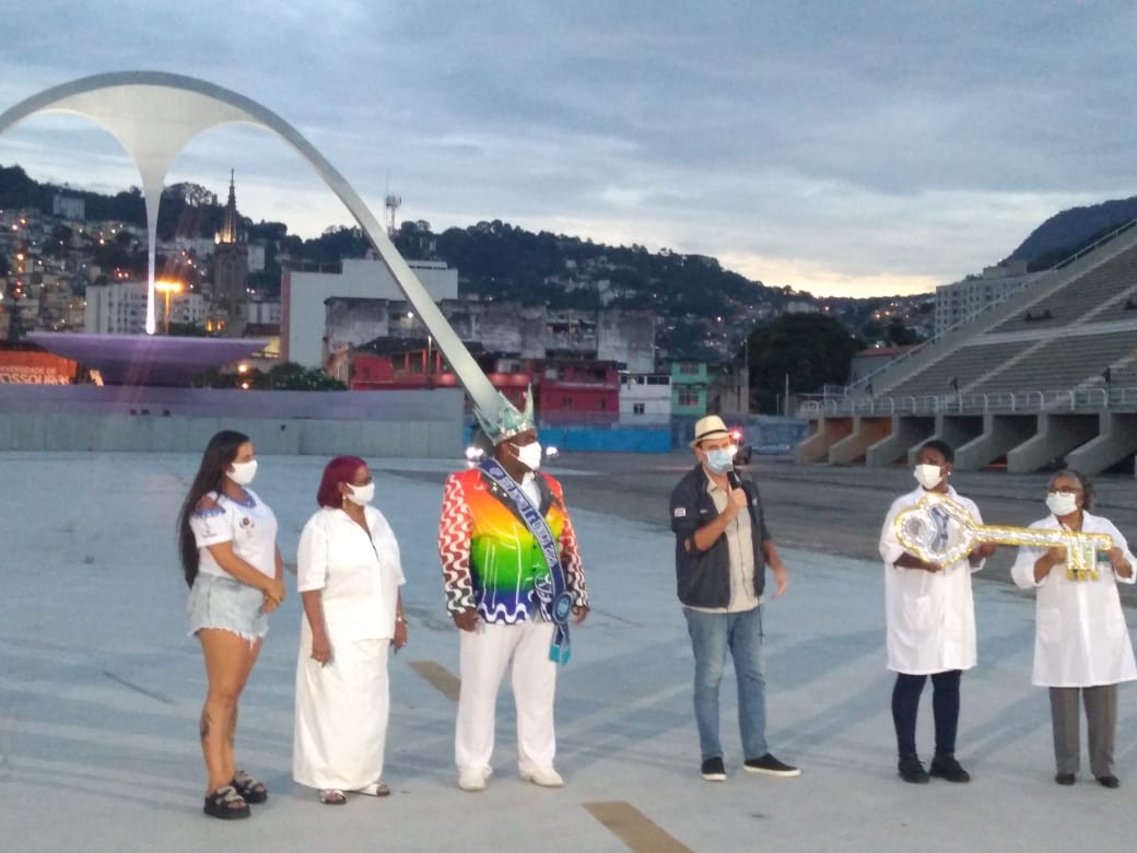 Confira imagens da iluminação especial da Sapucaí e da entrega das chaves da cidade