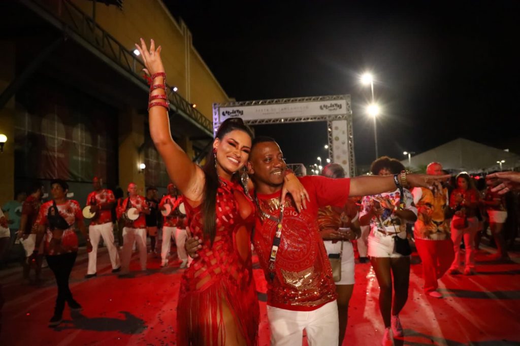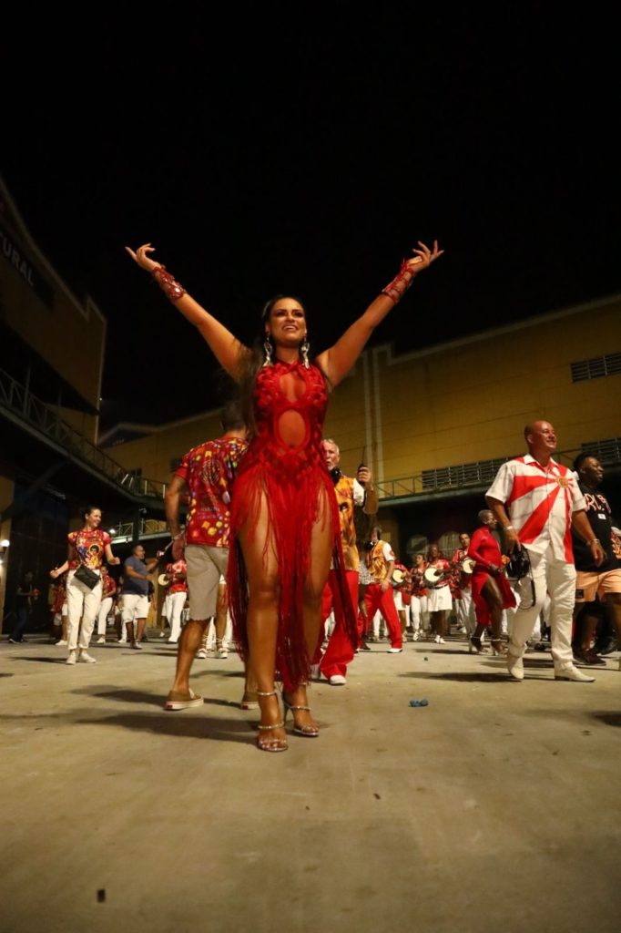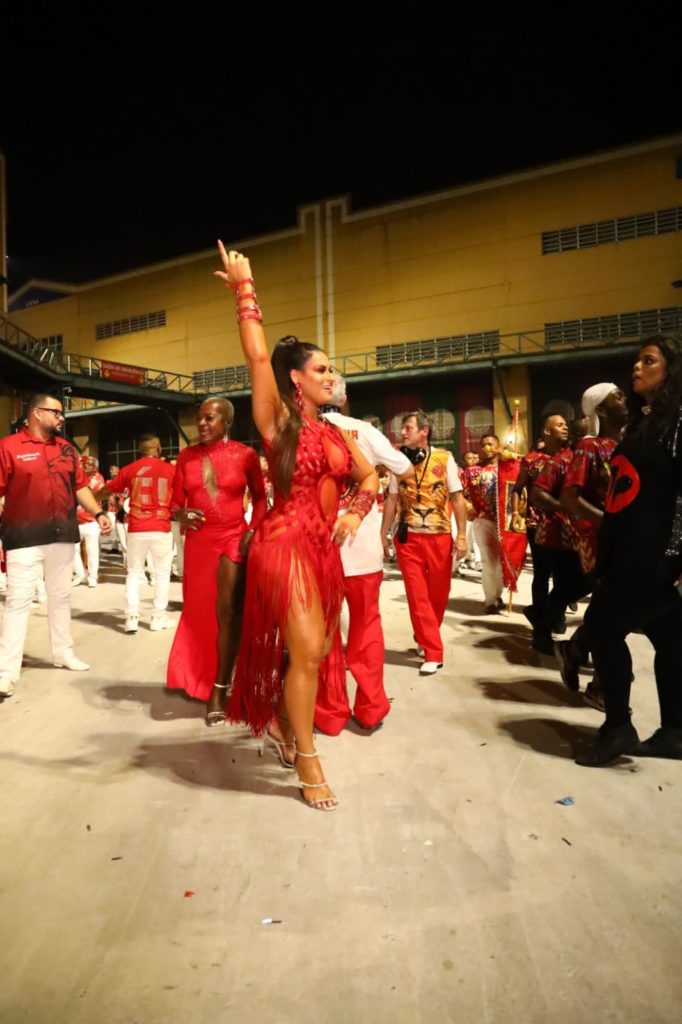 A Majestade arrancou aplausos e suspiros ao sambar com um look vermelho idealizado pelo estilista Henrique Filho, o mesmo que cuida dos figurinos da Anitta, Adriana Galisteu, Deborah Seco, Claudia Raia e das também rainhas Sabrina Sato, Lexa, Érika Januzza, até a cantora internacional Beyonce já vestiu peças do renomado estilista: