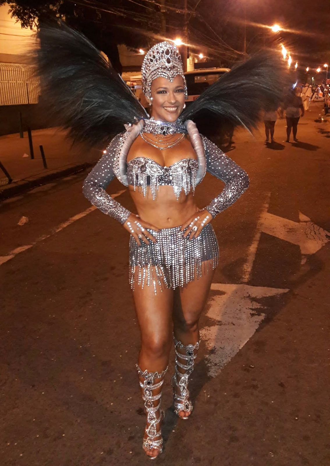 A jornalista Cristina Cruz desfila pelo segundo ano consecutivo como musa da Botafogo Samba Clube e Rainha de Bateria do bloco “Arrasta Polvo”
