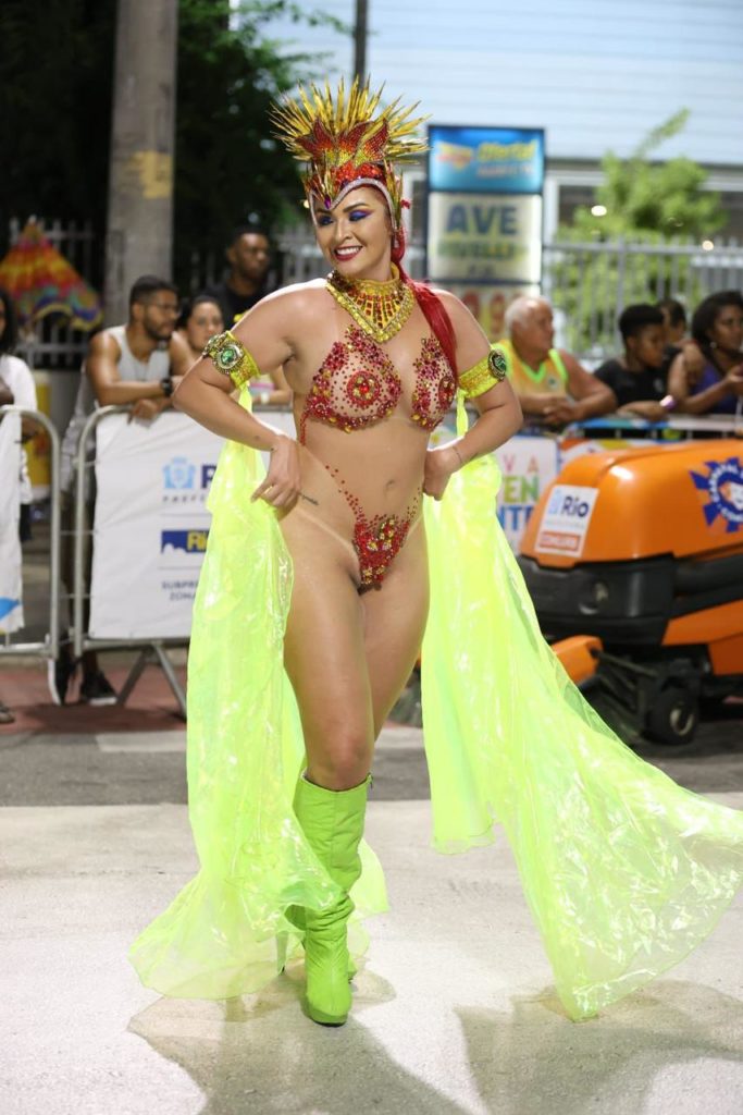 Nanda Marques, rainha da GRES Siri de Ramos, ressaltou a importância da reciclagem na Passarela do Samba da Intendente Magalhães, na Zona Norte do Rio de Janeiro, neste domingo( 26).