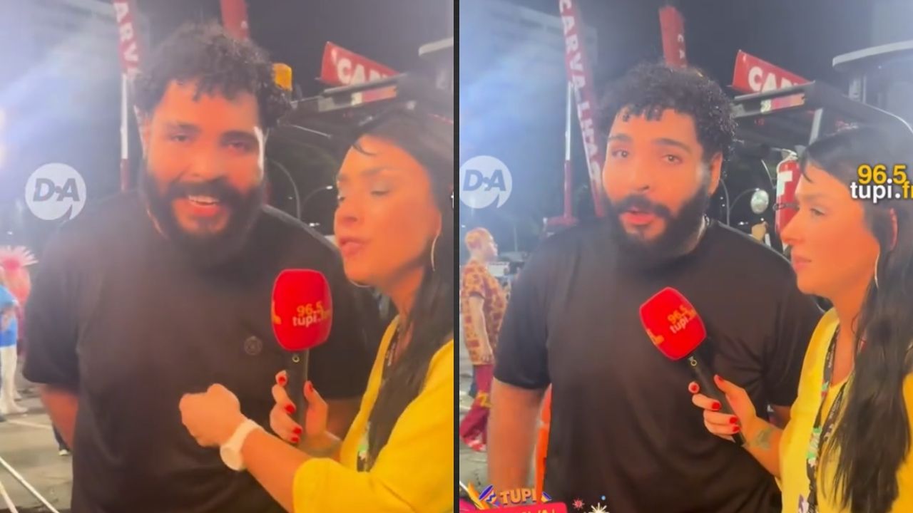 O momento mais descontraído veio quando o humorista foi desafiado a cantar o samba-enredo da escola. Paulo travou na hora e confessou que estava com o ritmo da Beija-Flor na cabeça.