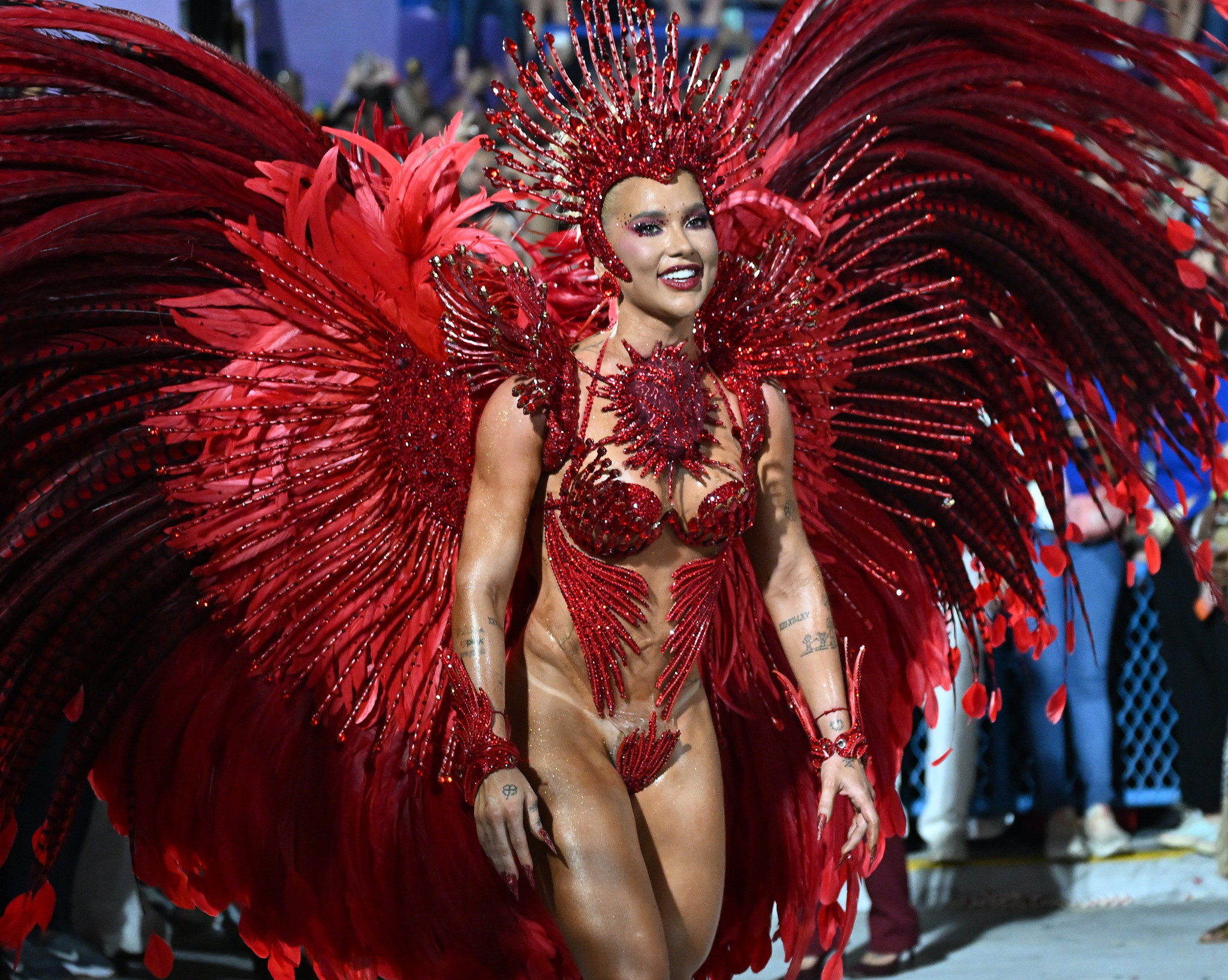 As normas da Liesa também proíbem nudez na Avenida: a escola que desfilar com integrante expondo a genitália perde 0,5 ponto. Não foi o caso da Grande Rio — o tapa-sexo descolou parcialmente, mas permaneceu no lugar.