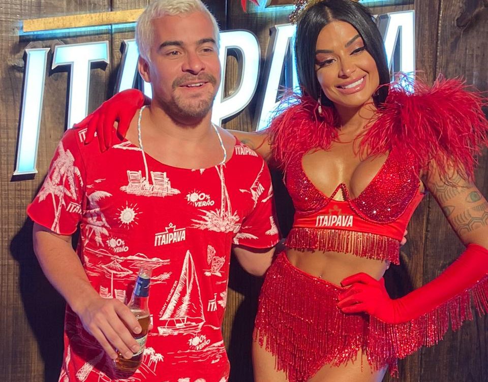 Thiago Martins aproveita folga das gravações e curte camarote com Aline Riscado