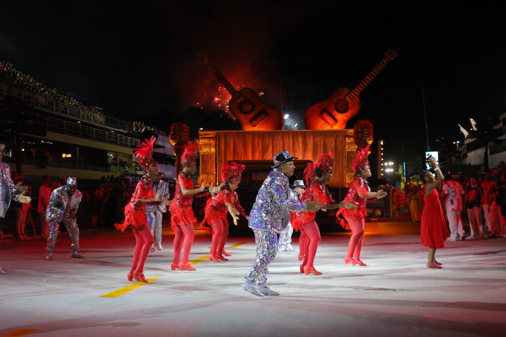 Com alegorias de grande porte e alas criativas, a escola levou para a Avenida referências a ícones do teatro nacional. No último carro, o destaque foi o cantor e compositor Moacyr Luz.
