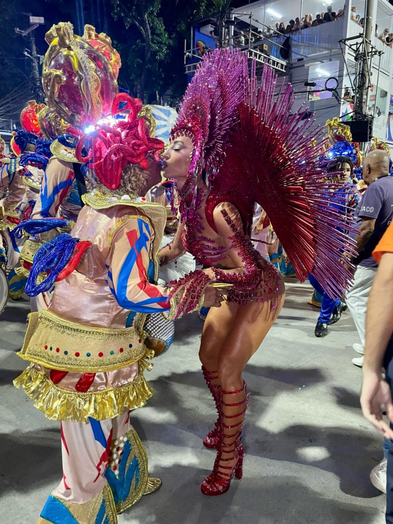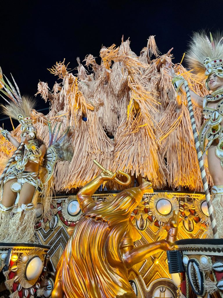 A Vila Isabel chegou à Sapucaí com “Gbalá — viagem ao Templo da Criação“, uma homenagem ao samba-enredo de 1993, que ficou em 8º naquele carnaval. Criada em 1993 por Oswaldo Jardim, a Vila Isabel traz uma leitura contemporânea de Paulo Barros, 31 anos depois.