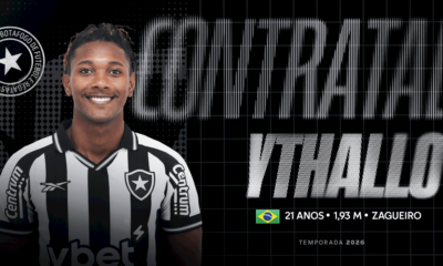 O Botafogo anunciou, nesta segunda-feira, 12, a contratação do zagueiro Ythallo, de 21 anos. O jogador chega ao clube para reforçar o sistema defensivo da equipe...