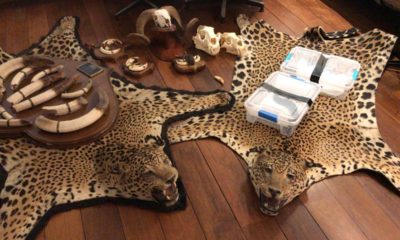 Agentes da Polícia Federal prenderam um homem com diversas ossadas de animais silvestres, cobras e dois tapetes feitos com carcaça de onças da Floresta Amazônica, dentro...