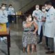 A aposentada Maria da Graça Dias Badajós, de 70 anos, foi a primeira vacinada no novo posto de imunização contra a Covid-19, inaugurado no Museu da...