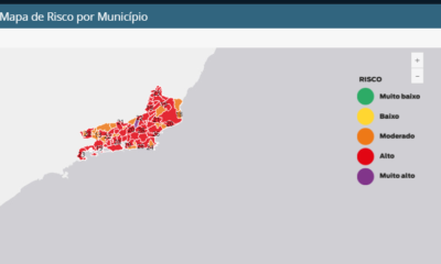 A 27ª edição do Mapa de Risco da Covid-19, divulgada pela Secretaria de Estado de Saúde, mostra o Rio de Janeiro com bandeira vermelha, mas aponta...