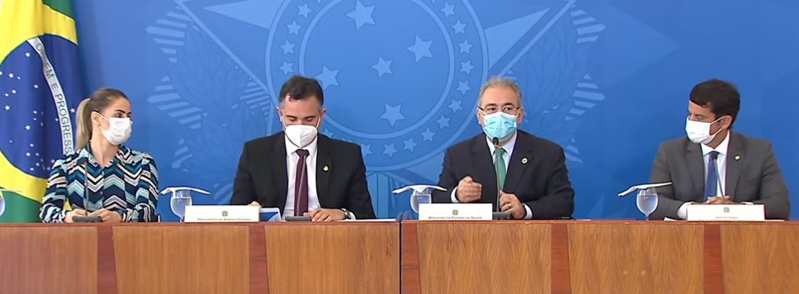 O ministro da Saúde, Marcelo Queiroga, em coletiva com o presidente do senado, Rodrigo Pacheco, e com o deputado federal Doutor Luizinho, que representou o presidente da Câmara, Arthur Lira, afirmou nesta quarta-feira que o governo vai antecipar o recebimento de doses da vacina da Pfizer contra a Covid-19 até o mês de junho, totalizando 15,5 milhões de doses do imunizante.