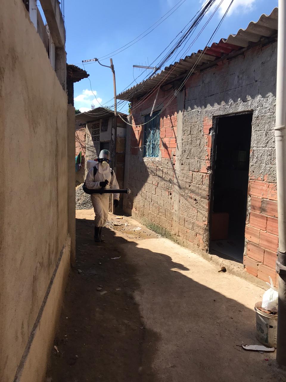 A desinfecção é conduzida por agentes especializados, com equipamentos de proteção individual (EPIs), que utilizam nebulizador a frio para borrifar produto com efeito desinfetante (quaternário de amônia de quinta geração e biguanida polimérica – phmb) nas vias e equipamentos públicos das localidades.